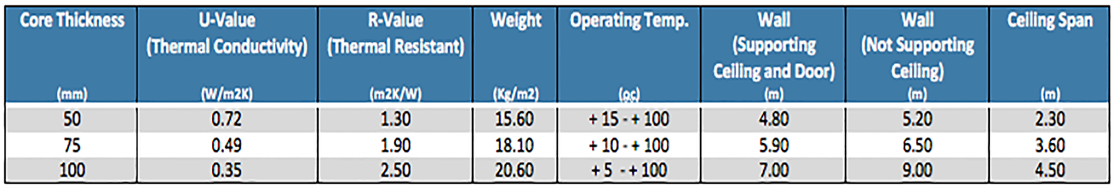 Rockwool tidak cocok digunakan untuk cold storage, tetapi cocok diigunakan di dekat area bersuhu panas karena sangat tahan terhadap suhu tinggi. Nilai densitas rockwool berkisar antara 100 Kg/m3 – 120 kg/m3, dengan nilai R-Value 0,55 m2.K/[W.in].