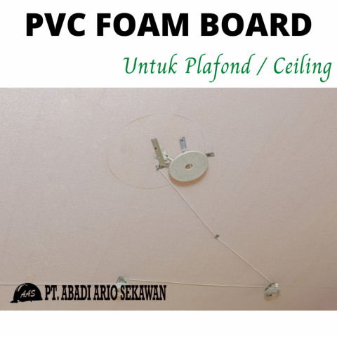 PVC Foam Board dapat digunakan menjadi plafon. Dengan tujuan agar lebih awet karena tahan air, anti jamur, tidak akan rembes, lentur tapi sangat kuat.